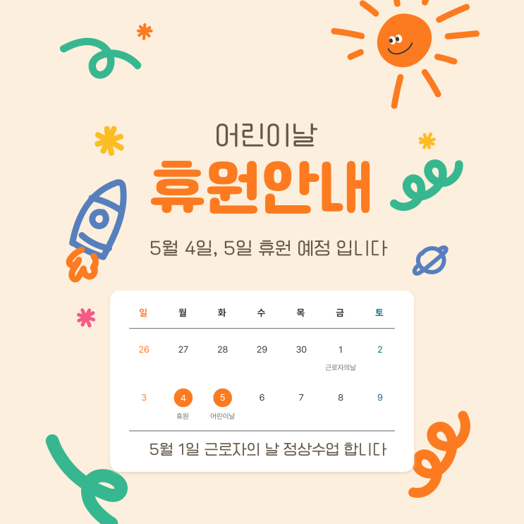 [고산동 수학학원] 2026 어린이날 학원 휴무 안내드립니다