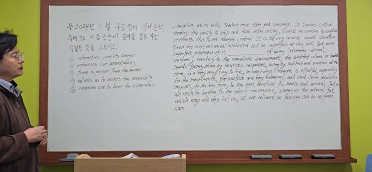 출제자가 문제를 낼 때는 글쓴이의 핵심적인 생각들을 판단할 수 있는 곳에서 문제를 내기 때문에 그런 부분들까지 감안해서 공부를 해 나가면 좋을 - 강남 의정부 신곡동 쎈영수학원