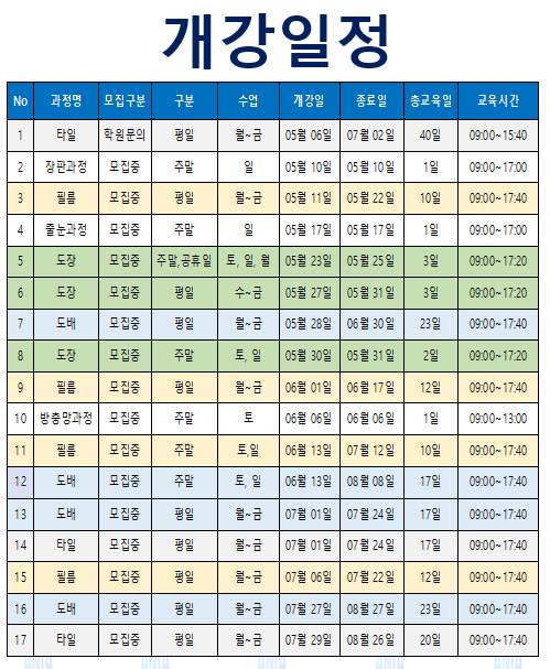(통합) 5월 1학기 기말 개강 시간표