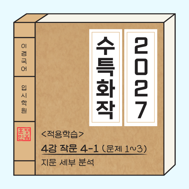 안녕하세요! 부천 상동 국어학원, 이경국어입시학원입니다 ✨ 오늘 소개해드릴 분석 자료는 2027학년도 수능특강 화법과 작문에 수록된 '적용학습 작문 4강 1번~3번 지역 사회 문제 해결(건의문)' 입니다 이번 수능특강 화작은 원미고, 송내고, 부명고, 상동고, 게남고 3학년 1학기 중간고사 시험범위에 해당되기 때문에 수능 대비 및 내신 대비에 도움이 되길 바라며 이경국어입시학원의 자체 제작 자료를 보여드릴게요 분석 노트 본문 안녕하세요? 저는 ○○ 한옥 마을에 살면서, 지역 홍보 대사로 활동하고 있는 고등학생 △△△입니다. 조선 시대의 종가, 살림집, 정사와 정자, 서원과 서당, 그리고 주변의 농경지와 자....... <img src="https://blogthumb.pstatic.net/MjAyNjA0MThfMTg0/MDAxNzc2NDkyNTgwODk2.z9tOrV7c4KVWwr1T4yLLisEXzYRLRKr1QhkEfM_u0Vkg.c4KUfIjDDvjHj9rWHzdtzRhi0O4-p6BZQ0PXOvvaQfQg.PNG/1.png?type=s3" />