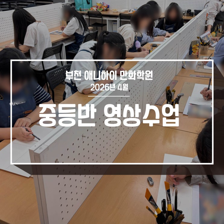 [ 부천웹툰학원_ANiHi ] 부천입시본원 안녕하세요. : ) #부천웹툰학원 부천애니스타의 새로운 이름, "부천애니하이 만화학원" 입니다. 여러분 요즘 날씨가 너무 좋아요! 나들이 가고 싶어지는 완연한 봄 날씨!!!! 모두들 행복한 일상 보내시길 바라며, 이번 글에서는 4월 중등반의 일상을 전할까 해요. 그리고 부천애니하이의 특별한 영상 수업 현장도 살짝 공개해 봅니다! 애니메이션과 웹툰을 사랑하는 우리 학생들은 좋은 작품의 흐름을 많이 보는 것이 필수이기 때문에 가끔 영상 수업을 진행하고 있는데요~ 이번에 학생들과 함께 시청한 애니메이션은 너무나 유명한 명작, <센과 치히로의 행방불명> 입니다. 이 작품, ....... <img src="https://blogthumb.pstatic.net/MjAyNjA0MThfMjkz/MDAxNzc2NTEwNzkyNDMx.-fSj_j3DaSgW9E04N3dONW3nwxfuBIneWjaEB7LinU8g.6e3kQD4Wfy2al8FePYo6sTklQSgpsplg_dJsZQTkf8Ug.JPEG/%BF%B5%BB%F3%BC%F6%BE%F7_%BD%E6%B3%D7%C0%CF.jpg?type=s3" />