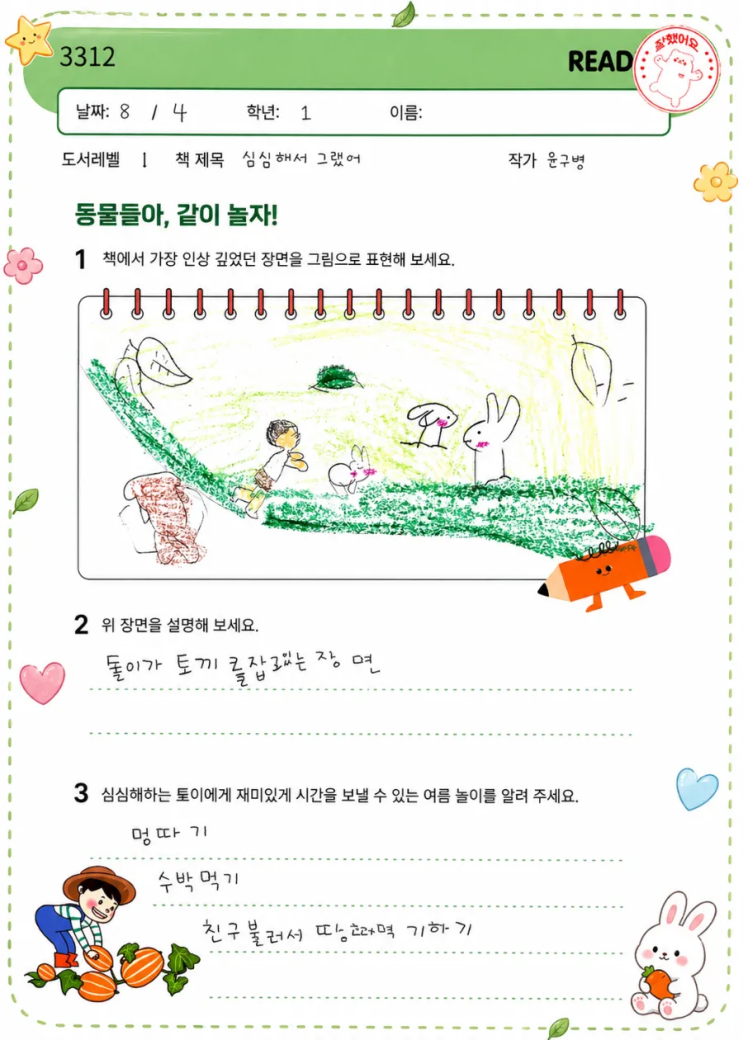 오늘은 한 학생의 글을 보면서 아이의 글이 달라진 순간을 같이 나눠보려고 합니다. 처음 글을 보면요 읽은 내용은 잘 기억하고 있는데 표현이 짧게 끝납니다. 딱 한 줄. 더 쓸 수 있을 것 같은데 거기서 멈춥니다. 아이의 글쓰기 조금씩 조금씩 변하기 시작해 한 줄로 끝나지 않습니다. 앞에 썼던 내용을 다시 끌고 와서 이어보기도 하고 “그래서 어떻게 됐지?” 하면서 한 줄을 더 붙입니다. 지금은 “이 장면이 기억에 남아요. 왜냐하면…” 이렇게 한 번 더 생각을 붙입니다. 이 왜냐하면이 생기기 시작하면 글이 달라지기 시작합니다. 아이가 스스로 떠올려서 쓴 느낌이 더 살아있습니다. 읽고 끝나는 독서에서 읽고 한 번 더 생각해보는 독....... <img src="https://blogthumb.pstatic.net/MjAyNjA0MjZfMTE3/MDAxNzc3MTU4NTMzODA0.S3YzJpcMkI3YI98ByHJHNdfBhvVh1BI_HCA6hC7V7u8g.BDYnBgFtVYO_FCsU49l2mKP8F-Pg-f1wjU40292UG94g.PNG/900_file_00000000643c720bb3f5128b9bef8367.png?type=s3" />