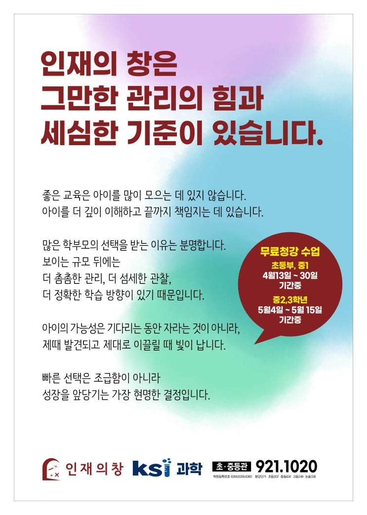 [후곡 인재의창 수학,과학] 초등부, 중등부 무료 청강 수업 안내