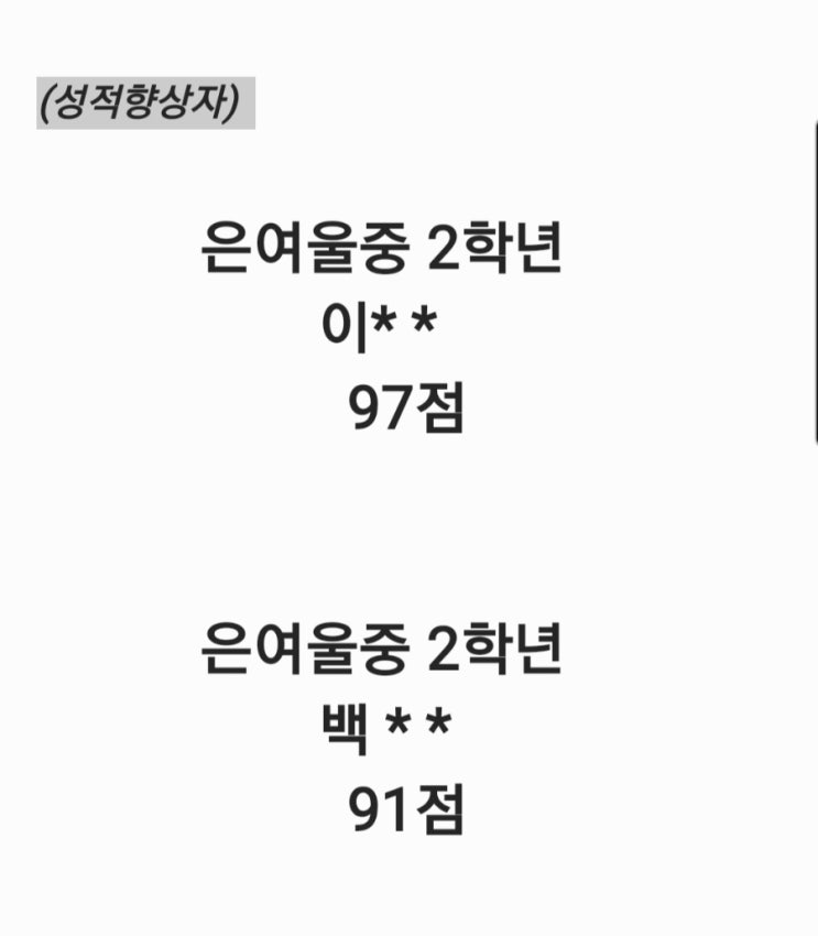 마산동 프리미엄 영어학원 제네시스잉글리시의 중등부에서 공부 중인 중학교 2학년 친구들이 중간고사를 치뤘답니다! 이제 중등부를 시작한지 2년차^^ 소수정예로 중2 친구들이 공부하고 있지만 올해, 몇 명의 친구들이 새롭게 조인해서 이제 같이 3달정도 공부했어요! 학원을 옮긴 가장 큰 이유는 중학교 1학년때 내신성적이 만족스럽지 않다는 이유여서.. 이번 중학교 2학년 첫 중간고사는 그 언제보다 부담스럽기도 하고 걱정도 되었답니다! 주말보강부터 시험 직전보강까지 열심히 달려온 친구들♡ 새로 들어온 친구들은 같이 공부한지 2-3달만에 10-15점 가까이 상승하는 저력을 보여주었답니다♡ 역시 학원은 분위기 열심히 하....... <img src="https://blogthumb.pstatic.net/MjAyNjA0MjNfMjAy/MDAxNzc2ODk5NTY4MTE2.VPJbs_gm5ikb9-GDleUBY_xGez4y9FMqF6EhNw5B4pEg.V-DbjAHBfEDlykF8DY4I_LpVYVjElCdO8aLPuWifjFUg.JPEG/900_Screenshot_20260423_081043_Samsung_Notes.jpg?type=s3" />
