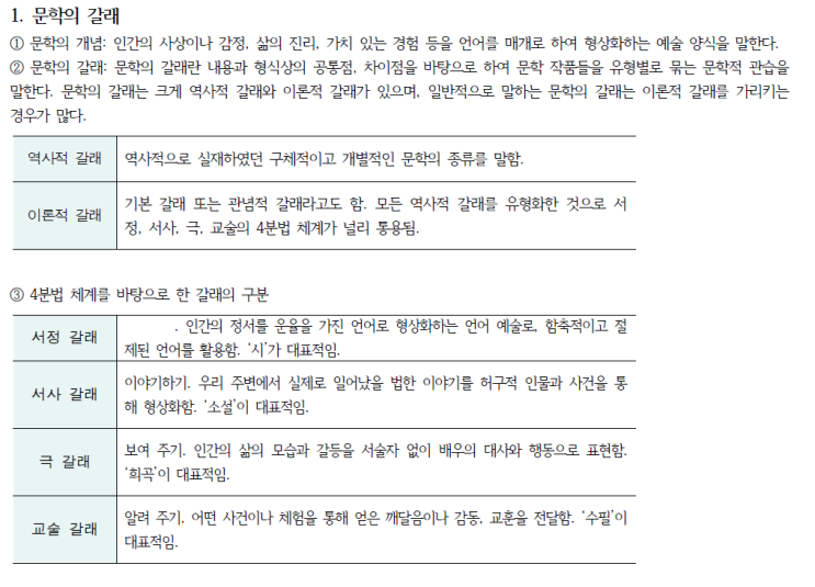 [고등 문학 이론] 문학의 갈래