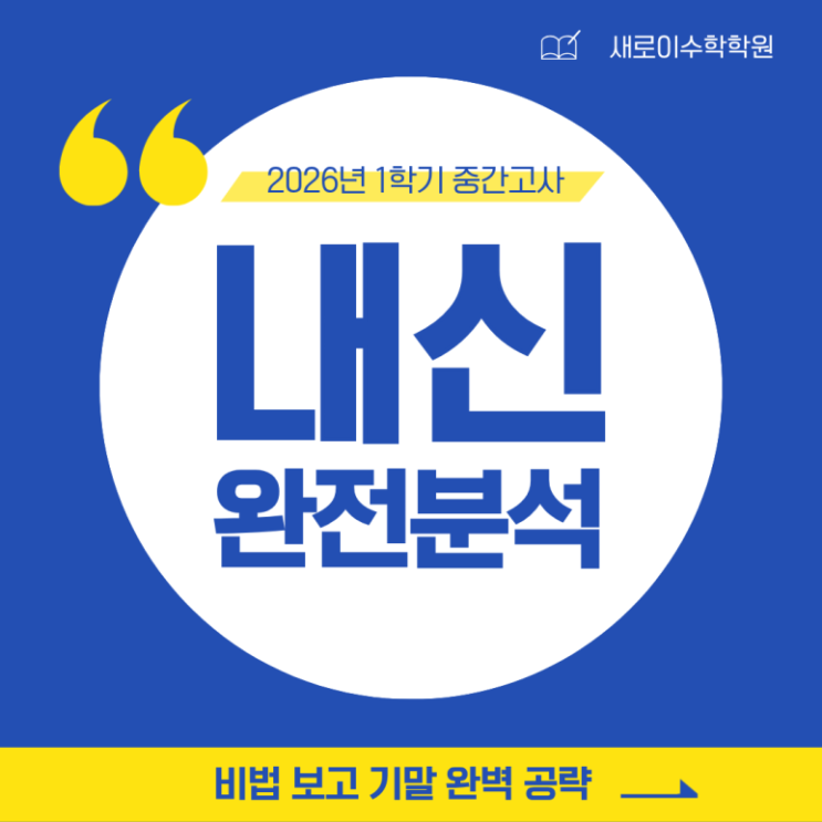 안녕하세요. 해운대 새로이수학학원입니다. 오늘은 2026년 동백중학교 3학년 1학기 수학 중간고사 문제를 바탕으로, 시험의 출제 방향과 학생들이 놓치기 쉬운 부분을 중심으로 정리해보겠습니다. 시험 구성 및 문제 유형 ☞ 시험범위 제곱근과 실수 ~ 다항식의 곱셈 ☞ 문항 구성 객관식 16문항 (60점) 서술형 8문항 (40점) ※ 작년(중2) 대비 서술형이 6문항 → 8문항으로 증가 시험 총평 ☞ 기본 시중 유형서 수준의 문제들로 출제 ☞ 익숙한 기본 유형을 정확히 풀 수 있는지 확인하는 시험 ☞ 작년보다 서술형 문항 수가 증가하면서 풀이 과정을 쓰는 능력이 더 중요해진 시험입니다. 단원별 출제분석 ① 제곱근과 실수 -제곱근의 뜻 -근호....... <img src="https://blogthumb.pstatic.net/MjAyNjA0MjlfMjY2/MDAxNzc3NDM2MDU5MDE3.eLkLWRFcERDjAdCO3qYz34c4l0a0DqgZT1szcUe8MMEg._1So_Rszy2WUJc3-u4yjk7ubT2hboqqIGrfHQUn33d0g.PNG/%B1%E2%C3%E2%BA%D0%BC%AE_%C7%A5%C1%F6%28%B1%E2%BA%BB%29.png?type=s3" />