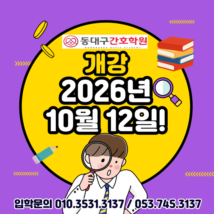 일교차 심한 요즘 잘들 지내고 계신가요? 며칠전 에어컨을 틀어야 하나를 고민했는데 오늘은 난방을 찾을 정도로 쌀쌀했어요 안녕하세요~ 26년 봄학기를 힘차게 출발한 동대구간호학원의 DNA예요 23기의 개강식이 엊그제 같은데 벌써 3주가 지나가고 있어요 그동안 동기들끼리 많이 친해져서 교실 분위기는 한층 화기애애해요^^ 다음달부터 시작될 현장실습 준비로 원장님과의 상담이 진행됐었던 한주였어요 실습협약된 다양한 병원들의 현실감있는 실습리뷰를 보여주며 실습지 선택에 많은 도움을 주고 있는 동대구간호학원입니다 우선 원하는 실습지가 있다면 원장님께서 실습이 가능한지 가능하다면 몇명을 받아줄 수 있는지 직접 전화해서 알....... <img src="https://blogthumb.pstatic.net/MjAyNjA0MTdfNzAg/MDAxNzc2NDEwMTY0NDcy.mYJ3tgxdvmlRn0e9PhIopK6_7lF85kIvNb0MVre-y-0g.a5sKQ-W_E2QJBVM80iry3FQj3Cg6iz9mYRXlld5-w_4g.PNG/%C1%A6%B8%F1%C0%BB_%C0%D4%B7%C2%C7%D8%C1%D6%BC%BC%BF%E4._%282%29.png?type=s3" />
