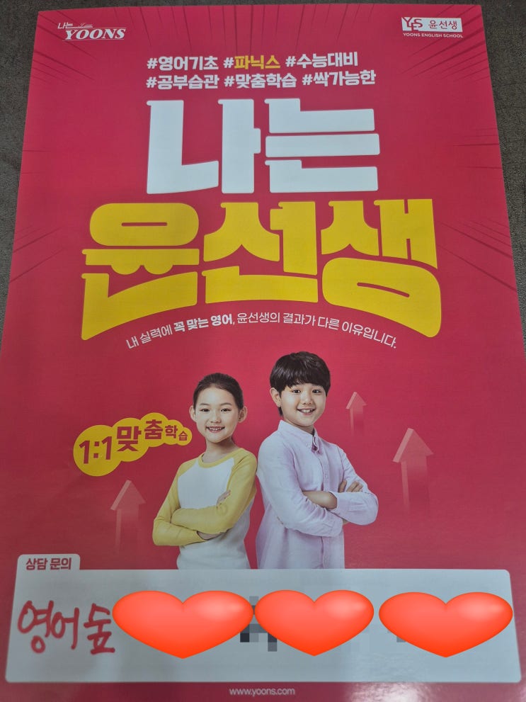 둔산동 윤선생 영어숲에서 초등 1학년 귀염둥이의 학습일기 영어와 국어의 소리에 눈을 뜨고 문장을 읽다! 아가같던 귀염둥이가 벌써 초등학교 1학년이 되어 본격적인 학습의 길로 들어섰네요. 요즘은 영어나 국어의 기초를 배우는 중요한 시기라 저희들도 설레는 마음입니다. 오늘은 윤선생 영어숲에서 배우는 영어와 국어 공부 이야기를 간단하게 적어 보려고 해요. 영어는 알파벳과 글자들의 '소리'의 비밀을 찾아서 재미있게 공부합니다. 알파벳의 모양과 그 알파벳이 내는 소리값(Phonics)을 익히고 있어요. 눈으로 익히기 : A, B, C... 글자 모양을 익히면서 귀로 듣기 : 각 철자가 단어 속에서 어떤 소리를 내는지 집중해서 들....... <img src="https://blogthumb.pstatic.net/MjAyNjA0MTVfOTEg/MDAxNzc2MjU2OTQ4Njk1.8FeA6AsL7zyRXvf3x_TTn-SygRUvJjimli7nKVaqJZcg.u7DrhXJI2WwnyAy-gqCQeyRw7EjyVG4OUDDGNMgwSygg.JPEG/KakaoTalk_20260415_210602535.jpg?type=s3" />