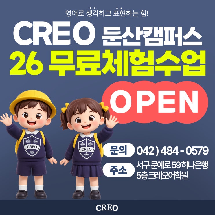 CREO 크레오어학원 둔산캠퍼스 우리 아이를 위한 특별한 초대, 5월 무료 체험 수업 OPEN!