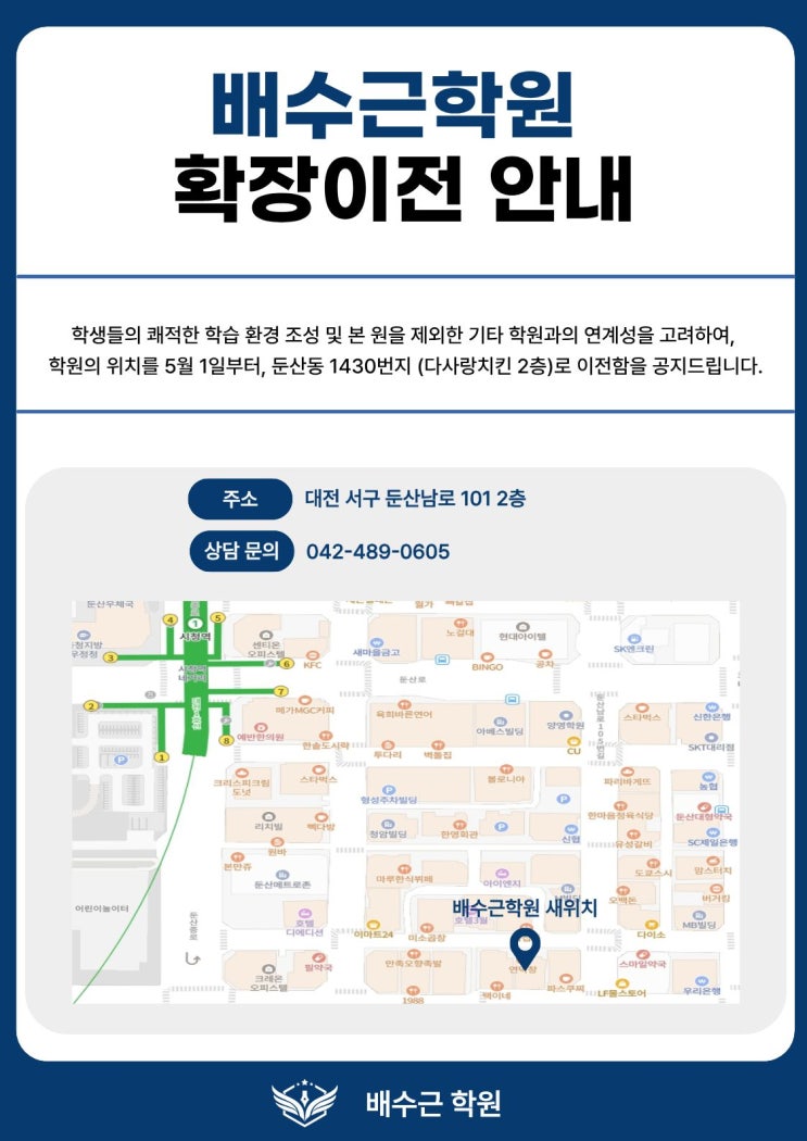 [둔산동 수학과학] 배수근학원 확장이전 안내