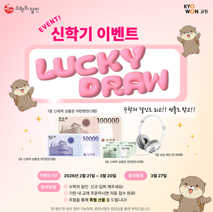 경축! 신학기 대박 행운! 교원 수학의달인 럭키드로우 4등 당첨자가 우리 학원에서 나왔어요!