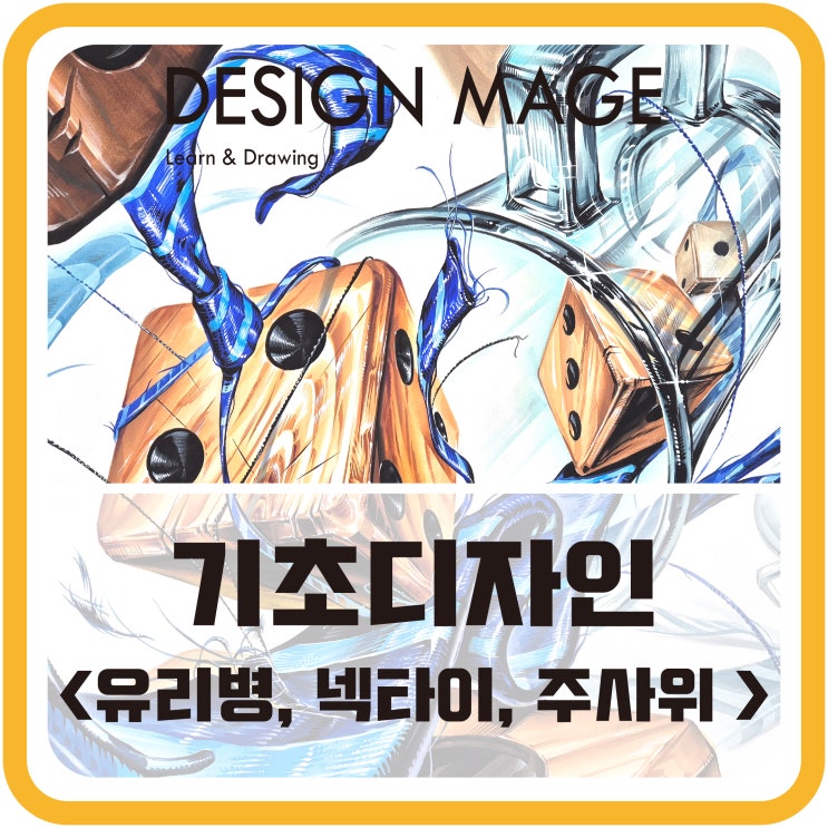 유리병, 넥타이, 주사위를 이용한 기초디자인 수업 시범작! 신곡동 미술학원