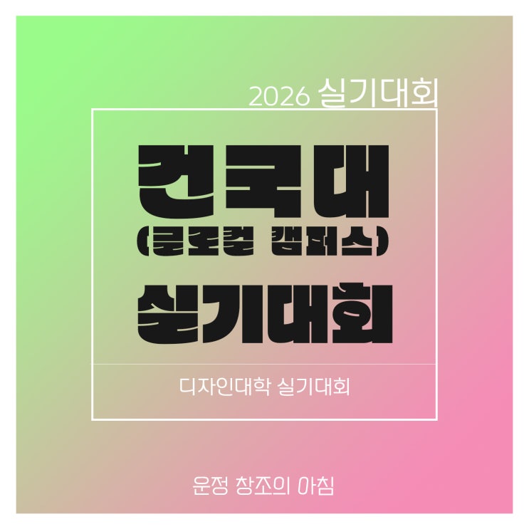 안녕하세요~ 운정 창조의 아침입니다. 오늘은 건국대 글로컬캠퍼스에서 진행되는 실기대회 소식을 정리해 볼까 합니다! ■ 접수기간 ■ -2026.05.11.(월) 10:00 ~ 05.29.(금) 16:00 *선착순 2,050명(결제 완료자 기준) ※인원이 조기 마감될 수 있습니다. ■ 접수 방법 ■ -엠굿 미대입시 홈페이지(www.mgood.co.kr) ■ 참가대상 ■ 전국 고등학교 재학생 및 졸업생(검정고시생 포함) □ 실기고사 날짜 □ 2026.06.27.(토) 오전 11시 □ 실기고사 시간 □ -2026.06.27.(토) 10:00(입실 가능 시간) -실기 시간: 11:00~15:00(4시간) □ 접수비 □ 55000원 (인터넷 접수비 5000원 별도) ■ 실기대회 부분 ■ 건국대 글로컬캠퍼스 디자인대학 실기대....... <img src="https://blogthumb.pstatic.net/MjAyNjA0MjNfMjIw/MDAxNzc2OTI2ODI3OTkx.fDKFHNchGlKdhVNzUtr1BpDXoJC2i-yWtpLWDKIgoWMg.6xX-UAnwNU_c93d-lM7P5ST2SQKiS-4DF_sFQZw_S7sg.JPEG/5.jpg?type=s3" />