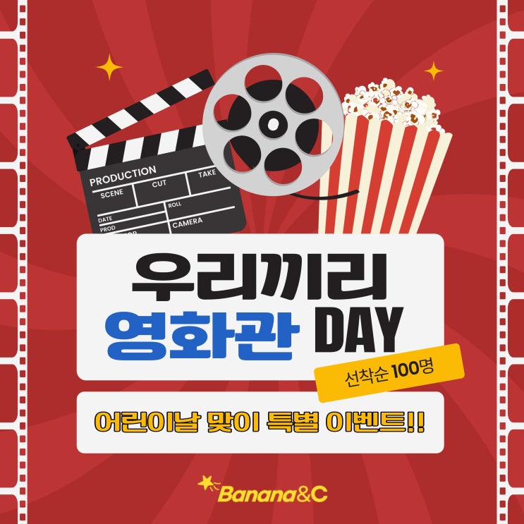 안녕하세요~^^ 운정 가람마을 힐스테이트 더 운정 앞 카페 게이트 건물에 위치 한 가람 바나나엔씨 미술학원입니다~! 다가오는 5월, 어린이날을 맞이하여 바나나엔씨 재학생들을 위해 특별한 이벤트를 준비했어요! [ 5월, 영화관에서 함께하는 우리끼리 영화관 DAY! ] 재학생들만을 위한 프라이빗 상영으로 무료로 관람할 수 있어요~ 이번에는 학원에서 벗어나 친구들과 함께 웃고, 즐기고 소중한 추억을 쌓는 시간을 가지려 합니다! 단순한 관람이 아닌 바나나엔씨를 다니고 있는 친구들끼리 함께하는 특별한 자리로 더욱 의미 있는 하루를 보낼 예정이에요~^^ 참여 신청은 5월 4일(월) 오후 1시까지! 기간 내 신청 바라며, 궁금하신 점은 언제....... <img src="https://blogthumb.pstatic.net/MjAyNjA0MTdfMjc5/MDAxNzc2NDI4NDEyOTk2.QGfjNF-f5eeB0GErvmip4jxhykJK1Ig7j45h_RovoMcg.4iI1Ufsh8NdsJ16yW30dx2H32ae2cFE3FEVETEO_jTcg.JPEG/%C1%A6%B8%F1%C0%BB_%C0%D4%B7%C2%C7%D8%C1%D6%BC%BC%BF%E4._%285%29.jpg?type=s3" />