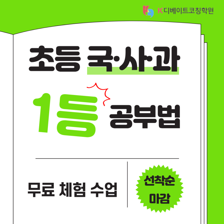 [공지] [김포 K디베이트코칭학원] 초등 국어똑, 사과똑 무료 체험 수업!