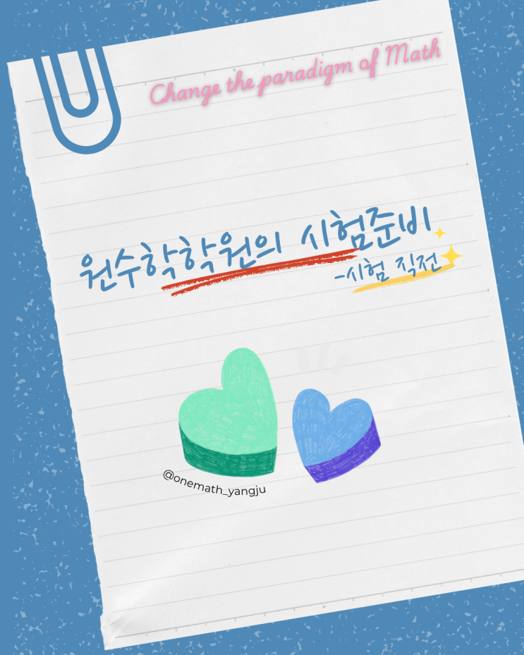 안녕하세요 원수학학원입니다. 시험이 벌써 얼마 남지 않았는데 다들 잘 대비하고 계신가요? 오늘은 원수학학원만의 꼼꼼한 내신대비의 비법, '모의시험'을 소개하려고 합니다. 원수학학원에서는 시험 직전 2-3주 전부터 선생님들께서 직접 기출을 분석하신 후 비슷한 난이도로 문제를 직접 출제하여 실제 시험과 동일한 조건으로 연습합니다. 이러한 과정을 통해 학생들은 부담감을 줄이고 자신감을 높일 수 있습니다. 또한 시험에서 가장 중요한 것 중 하나는 바로 '시간 관리'인데요, 아무리 개념을 다 이해하고 모든 문제를 풀 수 있더라도 "시간 내에" 답안지 작성까지 완벽하게 하는 것이 중요한 만큼 모의....... <img src="https://blogthumb.pstatic.net/MjAyNjA0MjNfMzgg/MDAxNzc2OTE4NTQ1MDkw.i4S9FjWH7NjGsg7hl8GAQM7gv64FFL8FoUC0I4ZudiEg.75d4WWvCEmwOGfT5JWIdcQH6xFXk3DBgepz00LLII6og.PNG/KakaoTalk_20260423_125434164.png?type=s3" />
