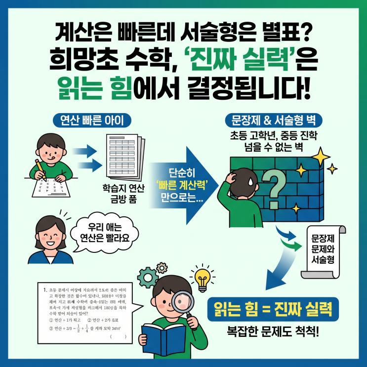 [천안 신부동 희망초 근처 초중등 영수학원] 계산은 빠른데 서술형은 별표? 희망초 수학, '진짜 실력'은 읽는 힘에서 결정됩니다!