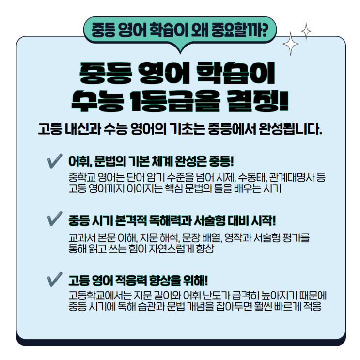 안녕하세요, 대교 하이캠퍼스 은평 학원입니다! 중학생 학부모님들과 상담을 하다 보면, 우리 아이가 영어 학습할 때 단어는 외우고 문제는 푸는데 긴 지문 해석에서 막히거나 왜 정답인지 설명하지 못해 고민하시는 경우가 정말 많습니다. 중등 영어는 단순 암기가 아니라 문장 구조를 이해하고, 정답의 근거를 스스로 찾는 힘이 중요합니다. 이 힘이 부족하면 고등학교에 올라가 긴 지문과 고난도 문제에서 쉽게 흔들릴 수 있습니다. 그래서 지금 필요한 것은 정답만 알려주는 학습이 아니라 질문하고 생각하며 스스로 답을 찾는 학습 과정입니다! 써밋 스텝영어중등 AI-Fit는 이런 사고의 흐름을 만들어 주며 독해 실력을 깊이 있게 완성해 줍....... <img src="https://blogthumb.pstatic.net/MjAyNjA0MTVfMjQz/MDAxNzc2MjUxMDM3NjMw.QVw6gs15-l2ug7PoINTwPen-K1638r3db0q-RYL6yUog.9hsEhSzLTC8JTXrnV1jAZtUwzs2GYpCMNRvu268knmUg.PNG/2_%281%29.png?type=s3" />