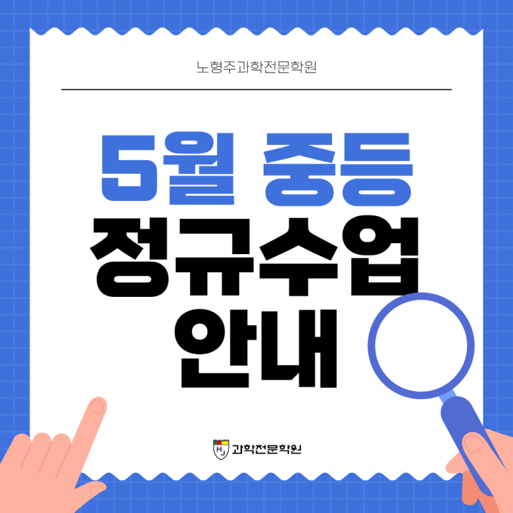 [은평구과학학원/노형주과학전문학원] 2026 중등 5월 정규 수업 안내