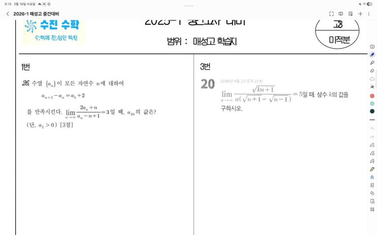 2026년 1학기 매성고3 - 미적분 중간대비 학습지자료