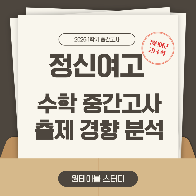 안녕하세요 원테이블 스터디 고등부 수학 담당 유라쌤입니다. 정신여고는 송파구 고등학교에서 수학 내신 따기가 가장 어려운 학교 중 하나 입니다. 그렇다고 어려운 문제만 출제되는 것은 아니고 모의고사형 문제를 포함하여 난이도 상중하 문제가 골고루 출제됩니다. 보통 선택형 7~8문제, 단답형 또는 서술형 2~3 문제들은 난이도 중하 문제들로 대부분의 학생들이 쉽게 풀수 있도록 되어 있고 선택형 2~4문제, 단답형 서술형 3~4 문제를 까다롭게 출제하는 편입니다. 그렇다면 과연 이번 시험은 어떻게 출제되었는지 알아보겠습니다. 시험범위는 다항식의 연산~여러가지 방정식(연립 방정식 전까지) 총 7개 단원이었습니다. 시험 범위의 양 자....... <img src="https://blogthumb.pstatic.net/MjAyNjA0MjdfMTY5/MDAxNzc3MjgwNTkyNzIx.fme2WiXr_dpZQ_bsUBMMPtcxuKXpRjkhEDZEPZ8tV84g.D7l1ksn5OP-rOQtDio-NC4MWM49fdmEFnCTXJVPq0jQg.PNG/%C1%A6%B8%F1%C0%BB_%C0%D4%B7%C2%C7%D8%C1%D6%BC%BC%BF%E4._%2814%29.png?type=s3" />
