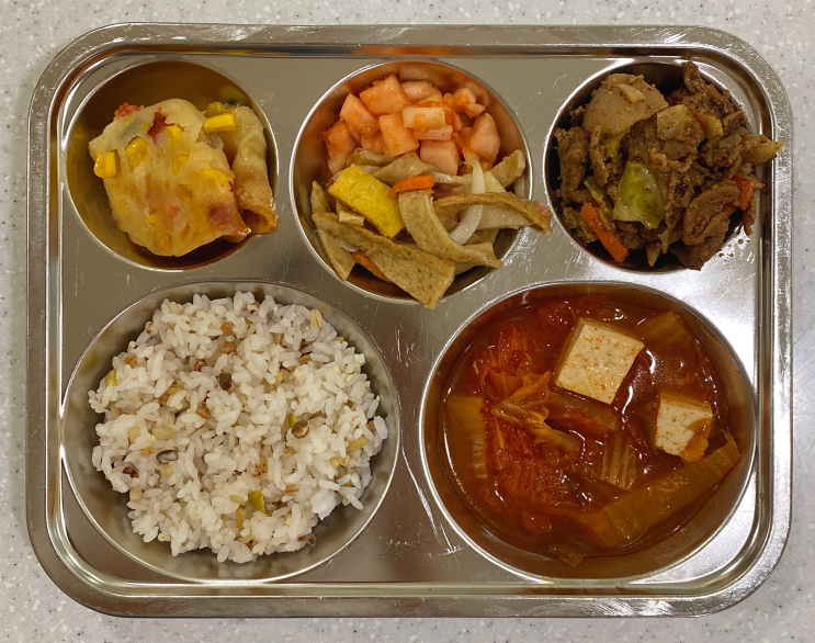 돈육들깨볶음 옥수수전 어묵야채조림 깍두기 참치김치찌개 잡곡밥 654kcal/30g <img src="https://blogthumb.pstatic.net/MjAyNjA0MjFfNDgg/MDAxNzc2NzQ4MDc2Mzkz.L8Ov2TQMJ3dbhwOfO2Rgw7k5o9mSX1nKuxnii5yvYN0g.Rf3-GV8AR_0PgP0_6VtHluHQk0aAYVAfKJjioGhenm8g.PNG/image.png?type=s3" />