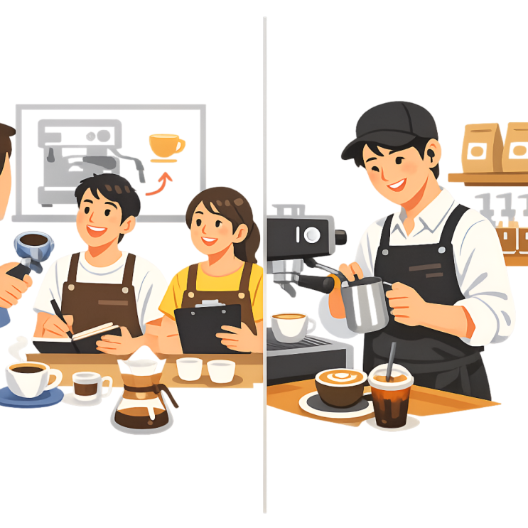 안녕하세요! 개금바리스타 학원입니다. 요즘... 날씨가 참으로 일교차도 크고 이럴 때 감기 조심해야지 하면 또 덥고... 알다가도 모를 날씨 입니다. 요즘 커피 수업에 대해 상담을 자주 하면서 하루를 보내고 있는데요. 가장 많이 듣는 이야기가 "얼마나 하면 취업할 수 있을까요?"라는 질문일 것 같습니다. 그래서 저는 반대로 "어디로 가고 싶고 어떤 곳에 취직하고 싶으세요? 그리고 얼마나 대우를 받고 싶으신거에요?"라고 역으로 질문들을 내어 놓습니다. 그러면 통상적으로 두 의견으로 많이 나뉘어 지는데요. 하나는 "좋은 대우 받고 좋은 환경에서 일할 수 있으면 좋죠."라는 대답과 하나는 "일단 어....... <img src="https://blogthumb.pstatic.net/MjAyNjA0MjhfOTgg/MDAxNzc3MzYyNzcyOTIz.BHQENFBxDg8oW7xazSVpzlicxrbAoy_QdbVTZzczG6gg._WLc4VII3ORJNNQCkW6I8Dodc4lk5BsTCcq53VAxeAUg.PNG/%C1%A6%B8%F1%C0%BB_%C0%D4%B7%C2%C7%D8%C1%D6%BC%BC%BF%E4._%281%29.png?type=s3" />