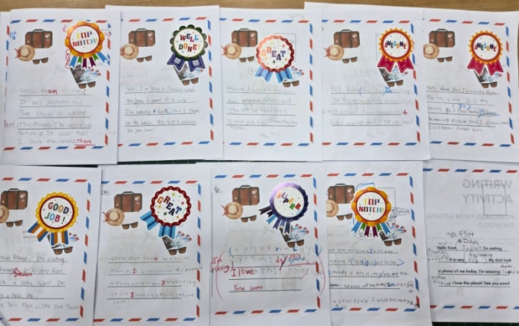 #신송초영어학원 #송도영어학원 #중학내신대비학원 #초등영어학원 #초등전과목공부방 #신송중영어 #먼우금초영어학원 #먼우금초등학교영어 #신송초영어 Hello , 안녕하세요~ 삼성영어 jenny원장입니다~ 오늘은 우리 친구들의 새로운 도전, writing day 에 했던 글쓰기 활동에 대해 알려드리려고 해요^^ 이번 주제는 " Postcards from around the world " 였답니다!! 친구들이 다른 곳에 여행을 가서 한국에 있는 가족들이나 다른 친구들에게 엽서를 보내는 상상만으로 즐거워했는데요~!(여행은 언제나 설레고 행복하죠!) Egypt, Japan, China, France, Italy... 등 세계 여러나라 뿐만 아니라 Jeju island, 심지어 from Moon!! 달....... <img src="https://blogthumb.pstatic.net/MjAyNjA0MThfMTI4/MDAxNzc2NDg2ODc3MDk4.WAsoGSELqUyvL3sR-3hfH32FfQqyBrK6R-HWdfm48xsg.8yWVg0BMeNoxAU3U4-V5j4MPzhJseYTFlkZ4G4cR2Fsg.JPEG/900_20260412_183236.jpg?type=s3" />