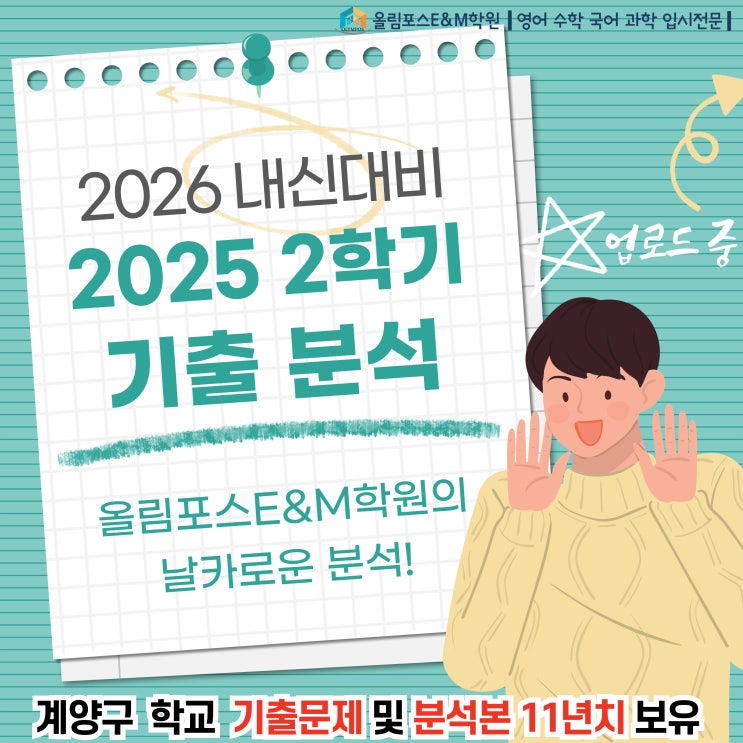 <영어> <과학> 기출분석 및 대비방법은 학원 내 중요자료입니다. 일부공개인점 양해부탁드립니다. 반드시 해답을 찾는 올림포스 E&M 상담문의: 032.542.5772 https://blog.naver.com/englishasap/223770113932 #계양구 #계양구학원 #계양구청학원 #서운고 #작전고 #작전여고 #계양고 #계산여고 #계수중 #계산중 #계산여중 #임학중 #세원고 #예일고 #계산고 #공부자극 #영어 #수학 #용종동학원 #국어 #중간고사 #양촌중 #수학시험 #안남중 #초등수학 #초등영어#계산동 #내신대비 <img src="https://blogthumb.pstatic.net/MjAyNjA0MjJfMTQz/MDAxNzc2ODMwNzU3MzQ2.Zn1Vgh24Ymf2m3RcwIuQ_FTwL6PDTx_rgwMOc6H7JMMg.2qVByRvzOu0SPoZzp7932wZ16rt0A6RvcQ9FHectMeAg.JPEG/%A4%C7%C8%A3%A4%C3%A4%BF%A4%D3%A4%D3-002_%282%29.jpg?type=s3" />
