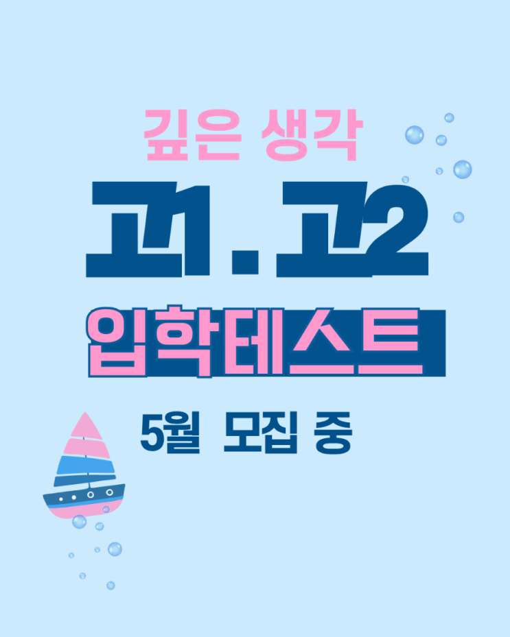 #고1.고2 입학테스트 안내입니다 #5월 중 모집 입니다 #고1 시험 범위 *1차 (5월1일 ~) ㅡ공통수학1 : 처음 ~ 여러가지 부등식 *2차 (5월17일~) ㅡ 공통수학1 : 처음 ~ 경우의 수 #고2 시험 범위 *1차 (5월1일 ~) ㅡ대수 : 처음 ~ 삼각함수 *2차(5월17일 ~) ㅡ대수 : 처음 ~ 수열의 합 #신청 방법 * 010.8184.8978 로 문자 주세요 ㅡ 이름, 학교, 시험응시 날짜 기록 요망 깊은 생각은 레벨별 학습 시스템에 의해 운영됩니다 . 수학 학습의 표준! 깊은 생각 !! #깊은생각 #깊은생각봉선 #폴리아수학 #대치시스템 #봉선동수학학원 #고등 #고1 #고2 #입학테스트 #레벨테스트 #테스트 #수학 #공통수학 #대수 #기말대비 #시험 <img src="https://blogthumb.pstatic.net/MjAyNjA0MTZfMjMz/MDAxNzc2MzI3ODA3NTI4.R05yrCUW0-KuApS_2nDJbTbv92pH5EVQAA6WuncZgbwg.yBl7NYog3QgocHZqR-CKP8w7XxjQNg0QzREujBJPjT4g.PNG/900_%BA%ED%B7%E7_%B9%D9%B4%D9_%BF%E4%C6%AE_%B9%E8_%C0%CF%B7%AF%BD%BA%C6%AE_%BD%E6%B8%D3%BD%BA%C4%F0_%C7%D0%BF%F8_%BF%A9%B8%A7%B9%E6%C7%D0_%C6%AF%B0%AD_%C8%AB%BA%B8_%C0%CE%BD%BA%C5%B8%B1%D7%B7%A5_%B0%D4%BD%C3%B9%B0_20260416_170745_0000.png?type=s3" />