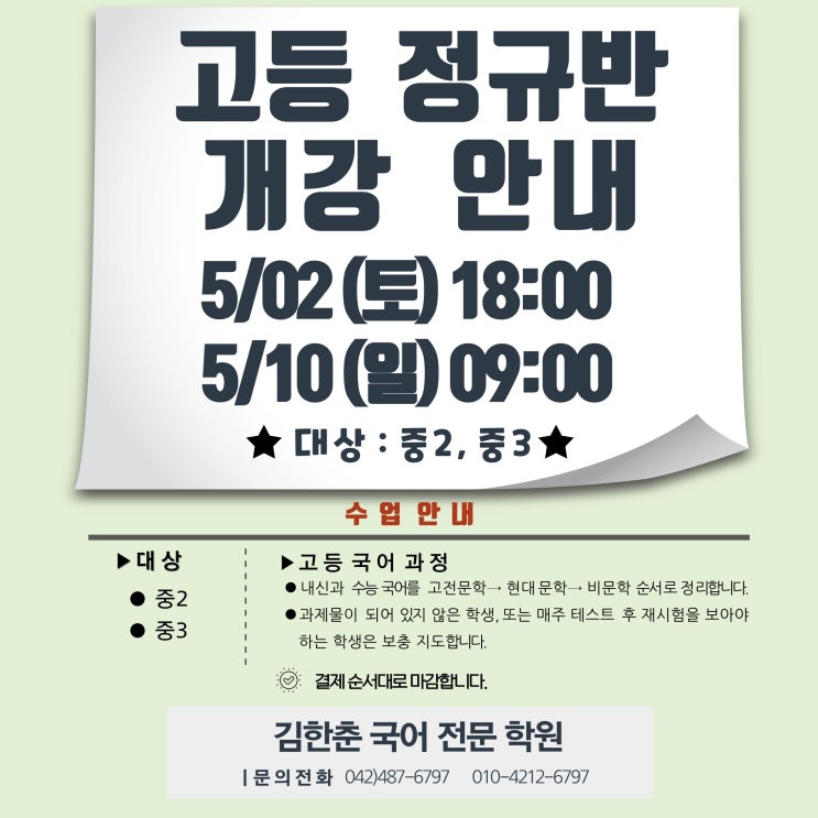 3월 정규(고전문학)반 개강 안내