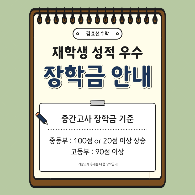 김효선수학 재학생 '성적 우수 장학금' 안내
