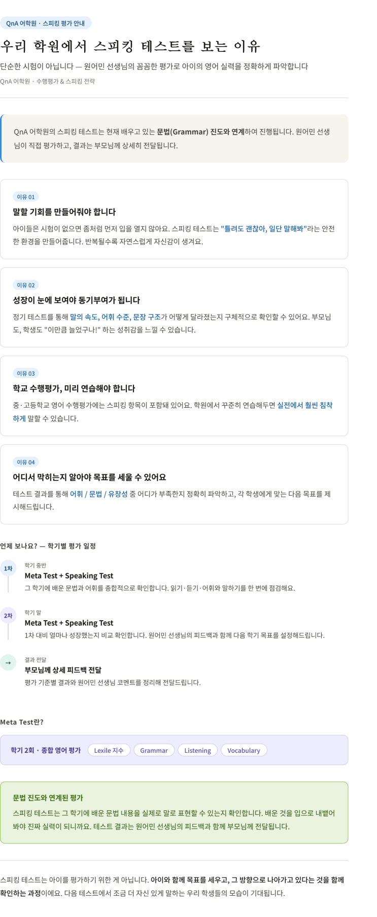 우리 아이 영어, 말해봐야 알 수 있어요 — QnA Speaking Test