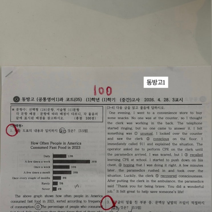 관저동 영어학원, 2026년 동방고 1학년 1학기 중간고사 영어 100점 나온 이유