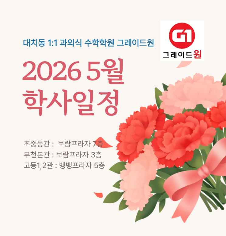 상동 수학학원 그레이드원 부천캠퍼스 2026년도 5월 학사일정 안내