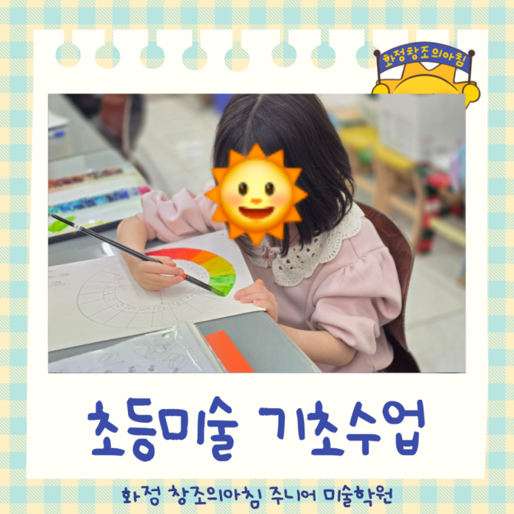 안녕하세요, 햇살이에요 경기도 고양시 화정동에 위치한 화정 창조의아침 주니어반에서는 아이들이 즐겁게 그림을 그리면서도 수채화와 소묘의 기초를 탄탄하게 쌓아가는 초등미술 수업을 진행하고 있습니다 요즘 아이들 작품을 보면 단순히 잘 그렸다 보다 어떻게 보고 , 어떻게 표현했는지가 더 중요하다고 느껴요. 그래서 저희 주니어반 수업에서는 ☘️ 관찰하는 힘 ☘️ 형태를 잡는 기초 소묘 ☘️ 색을 쌓아가는 수채화 표현 이 세 가지를 중심으로 아이들이 스스로 표현할 수 있는 기반을 만들어가고 있습니다 기초가 탄탄해야 표현이 자유로워져요 처음 미술을 시작하는 친구들은 선 긋기 , 형태 잡기부터 차근차근....... <img src="https://blogthumb.pstatic.net/MjAyNjA0MTFfMTk1/MDAxNzc1OTAzNjk4NTA2.6fr3YmWhfprf9-SpD5L1TVCJc0QDGE-Qj0sg0Hovnlwg.vy71BL9xYCzNj3uURUgyFD3-0NUjMkh6jxrcdX2vm3Mg.PNG/900_%C8%AD%C1%A4%C3%A2%BE%C6-%BA%ED%B7%CE%B1%D7-%B4%EB%C7%A5%C0%CC%B9%CC%C1%F6-001_%281%29.png?type=s3" />