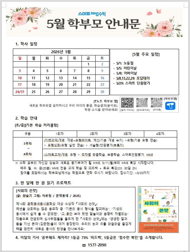 당동리영어학원/당동리수학학원 '그린 학원 5월 학부모 안내문'
