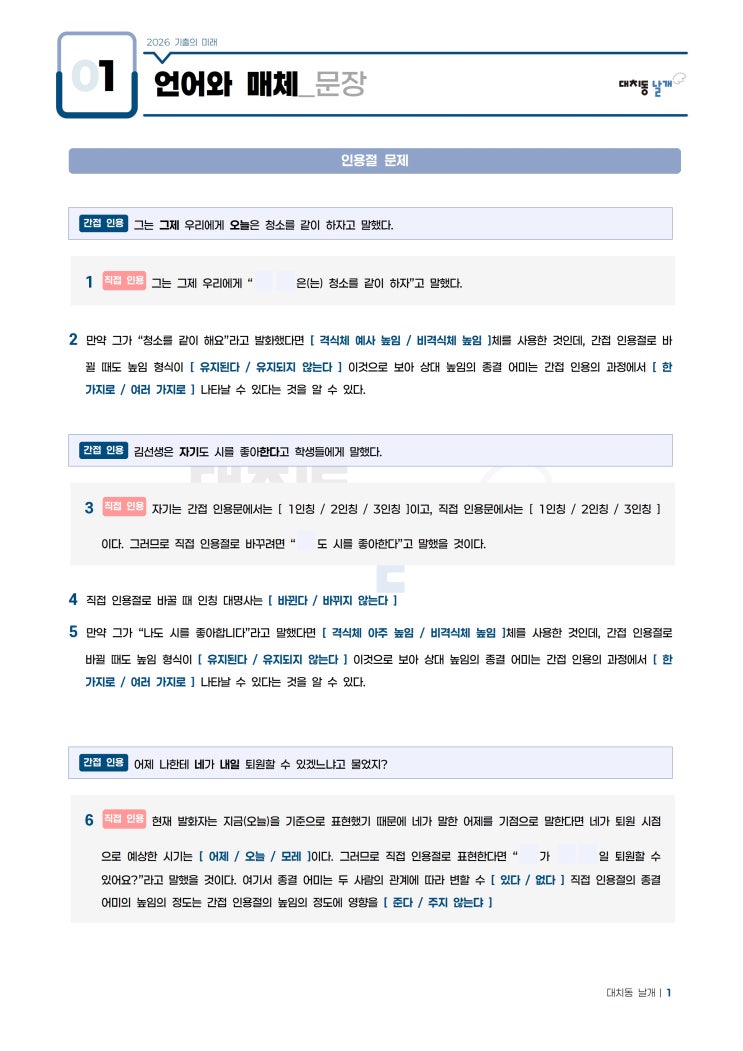 [대치동날개] 기출의 미래 언어와 매체 오엑스