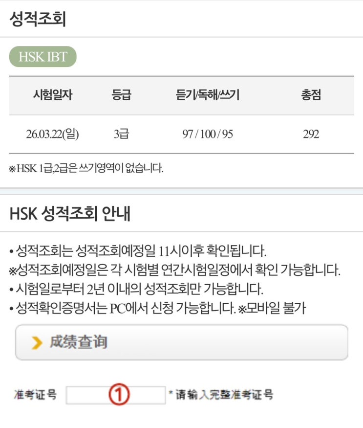 안녕하세요~ 중국어 전문 교육기관 부경중국어학원입니다!! 오늘도 아주 아주 좋은소식을 가져왔어요~~!! 저희 이번 HSK 3월22일 시험에서 학원생(고등학생)이 엄청 고득점으로 합격했답이다!! 만점에 300점인데 292점으로 고 고 고득점을 받았네요~~^^ HSK 시험은 학생의 중국어 실력을 객관적으로 평가할 수 있는 중요한 국제시험입니다. 이번 결과는 우리 학생이 꾸준히 노력하며 열심히 공부해 온 값진 결실이라고 생각합니다. 고등학생 시기는 대학 진학과 미래를 준비해야 하는 중요한 시기인 만큼, 이번 성과가 더욱 뜻깊습니다. 미리 준비하는 사람이 더 빠르게 목표에 도달한다는 말처럼, 고등학교 시기는 인생의 방향을 결정하는 매....... <img src="https://blogthumb.pstatic.net/MjAyNjA0MjdfMjkg/MDAxNzc3Mjg2NDYwMjU2.pGAO7lnF9CF0vknQ76nuR7JWAF9jSamS2iTSrQR5G0Qg.deKSHXSXbXjFh1kge-C4HehbJulIkdOu4nhzZ5QukN8g.JPEG/IMG%A3%DF6765.jpg?type=s3" />