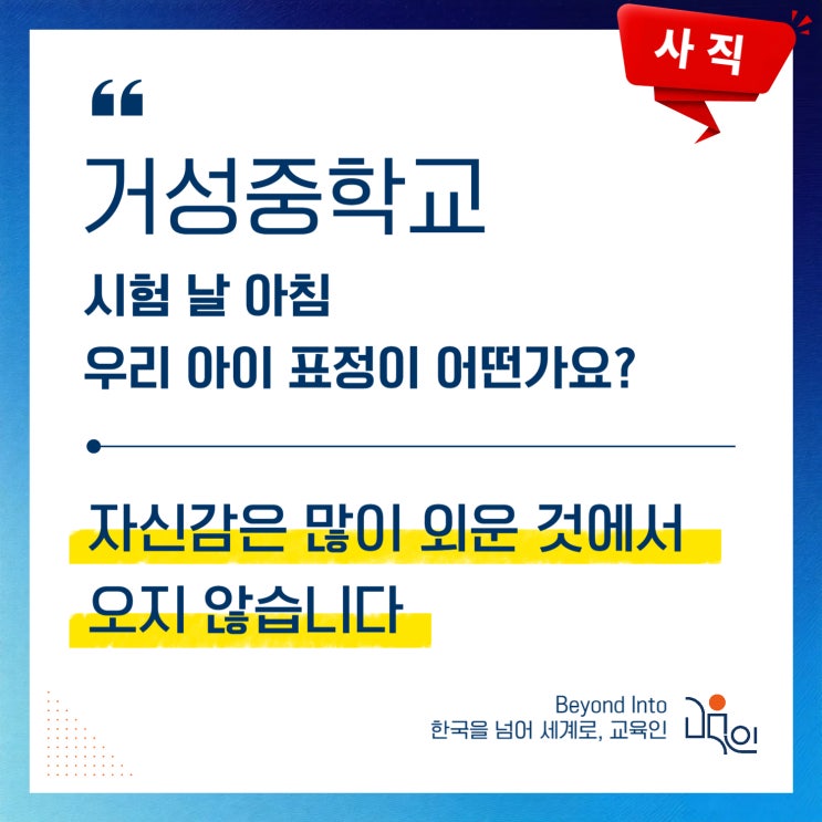 거성중학교 부산, 시험 날 아침 우리 아이 표정이 어떤가요?