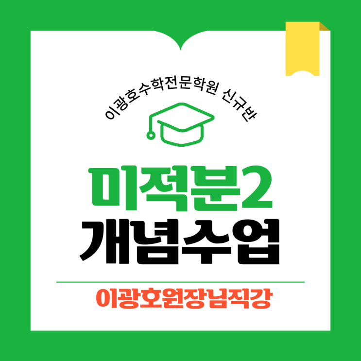안녕하세요. 이광호수학입니다. 5월 4일 미적분2 개념수업을 시작합니다. 요일: 월수금 시간: 6시30분-9시30분 교재: 개념원리 +RPM 4개월과정 입니다. 미적분1을 학습한 학생들이 신청가능합니다. 학원으로 문의주세요 감사합니다. #해운대수학 #해운대수학학원 #센텀수학 #센텀시티 #센텀파크수학학원 #자사고수학 #특목고수학 #과학고수학 #중등경시 #KMO #IMO #중등경시수학 #초등경시 #초등경시수학 #외고수학 #큐비e센텀수학 #큐비e센텀 #센텀고 #해강고 #센텀여고 #충렬고 #반여고 #혜화여고 #해운대고 #대연고 #동천고 #예문여고 #경남여고 #부일외고 #남일고 #동여고 #문현여고 #동래고 #용인고 <img src="https://blogthumb.pstatic.net/MjAyNjA0MjFfNDQg/MDAxNzc2NzAyNTY1ODkw.CT1-d7I5fX6xjM3jr00Vvhzm6WJuq1M-SXYROps6YOcg.mGcuTiPSPhUG5GmObW57DBhEeX-sPxcTuxG1KdxykIsg.PNG/%B9%CC%C0%FB%BA%D02_%B0%B3%B3%E4-_%BA%B9%BB%E7%BA%BB.png?type=s3" />