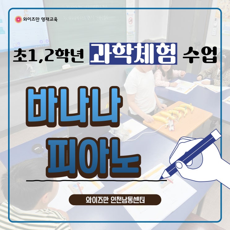 안녕하세요. 구월동 간석동 수학/과학학원 와이즈만 인천남동센터입니다. 2026년 과학의 달을 맞아 초등학교 1, 2학년 친구들과 함께 아주 특별하고 맛있는(?) 수업을 진행했는데요. 바로 단 40분 만에 아이들을 꼬마 과학자 겸 천재 뮤지션으로 만들어버린 마성의 체험 수업, ‘바나나 피아노’입니다. 과연 우리 아이들은 바나나로 어떻게 모차르트가 되었을까요? 일반 피아노 vs 바나나 피아노 수업이 시작되고 교실에 노란 바나나가 등장하자 아이들의 눈이 휘둥그레졌습니다. "선생님, 오늘 간식 시간이에요?"라는 질문이 나올 줄 알았는데, 웬걸요? 우리 친구들은 달랐습니다. 먹는 데는 크게 관심이 없고, 눈앞에 놓인 전선과 바....... <img src="https://blogthumb.pstatic.net/MjAyNjA0MjNfMTcx/MDAxNzc2OTA5Njk5NTAy.vxGWGhPerS9S9NZV5yhP3lBG82ZmqbwyM-YU_sr5UIEg.-DmoTQF0i3v65DWrLxazbLZLueDgod7SHj-JMAhYV2og.JPEG/%C1%A6%B8%F1%C0%BB-%C0%D4%B7%C2%C7%D8%C1%D6%BC%BC%BF%E4_-003_%289%29.jpg?type=s3" />