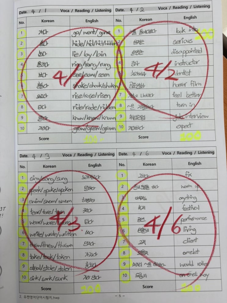 유캔영어의 철저한 관리 시스템!! 시험&오답 노트