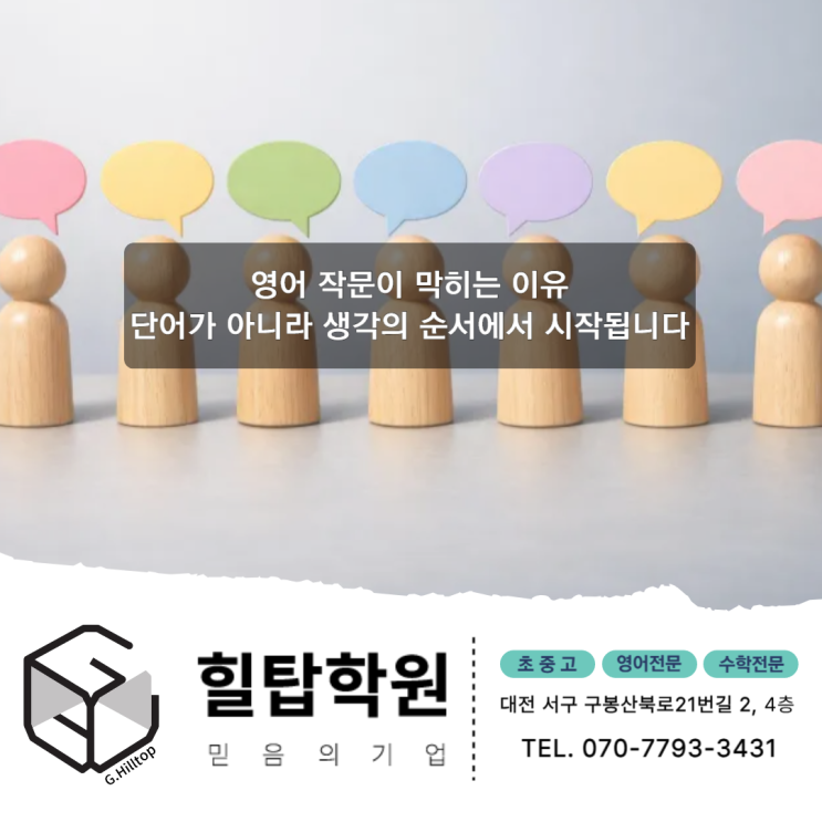 관저동 영어학원 힐탑학원 영어 작문이 막히는 이유 단어가 아니라 생각의 순서에서 시작됩니다