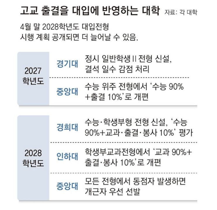 이제 대입에서 출결의 중요도가 더욱 높아졌습니다.