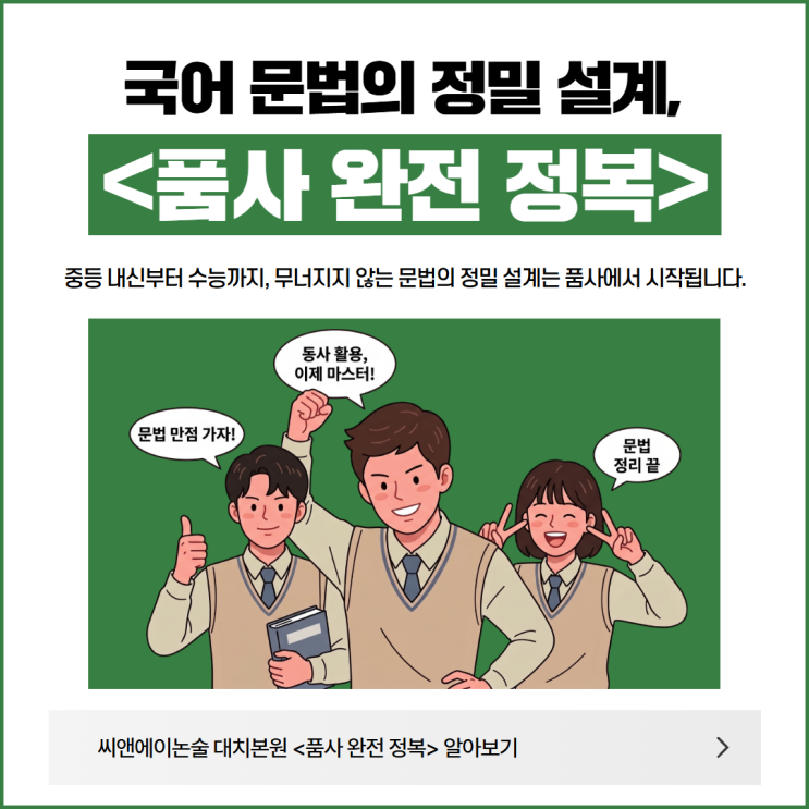 [씨앤에이논술 대치본원] 국어 문법의 정밀 설계, <품사 완전 정복> 특강 안내