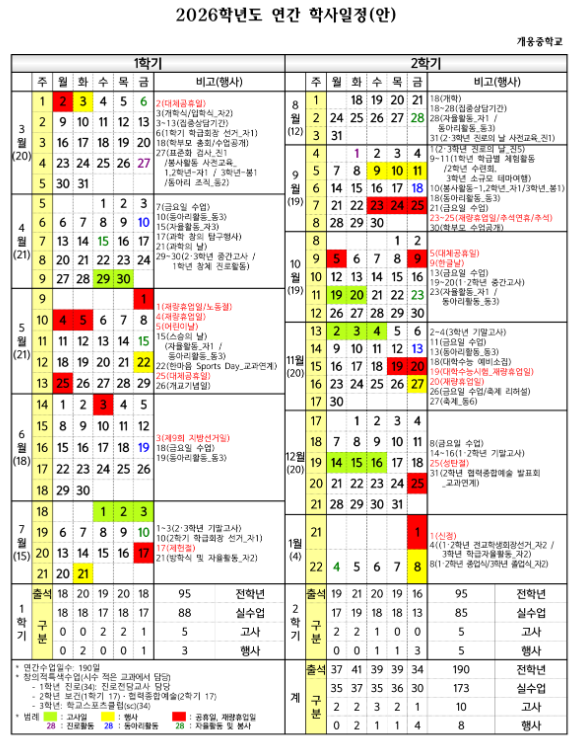 2026년 개웅중 학사 일정