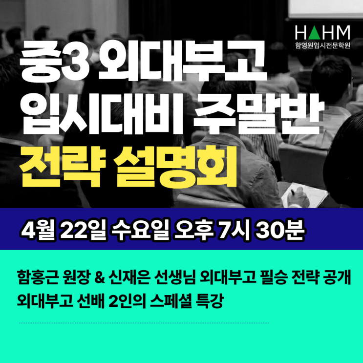 [4/22 수] 외대부고 내신 수학 1등급의 비결, 함홍근 원장이 직접 공개합니다 (입시 설명회 안내)