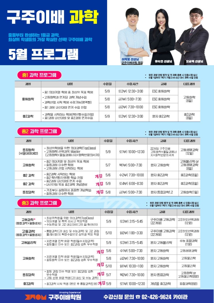 [중등] 구주이배 과학 5월 개강 프로그램 안내