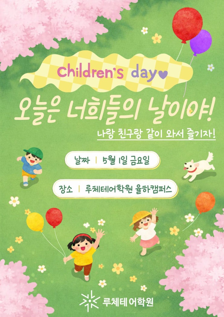 안녕하세요. 김해 루체테어학원 입니다 5월 1일(금) 단 하루! 루체테어 어린이날 스페셜 EVENT “이 날만큼은 마음껏 놀자!” 루체테어학원이 제대로 준비했습니다 친구 동반 완전 환영! 학원 다니지 않아도 OK 처음 오는 친구도 대환영 다양한 게임 & 꿀잼 프로그램 풍성한 간식 & 이벤트 선물까지! 그냥 노는 날이 아닙니다. 단어시험은 쳐야해요!! 5월 1일 (금) 루체테어학원(꿈나무병원 5층) ⚠️ 놓치면 후회하는 어린이날, 이번엔 제대로 즐기세요 ✨ 봄을 만나 피어나는 꽃처럼, 너희를 만나 빛이나는 루체테✨ 루체테어학원만의 글쓰기 시스템을 통해 우리아이도 논리, ....... <img src="https://blogthumb.pstatic.net/MjAyNjA0MTVfODgg/MDAxNzc2MjQwNjIxMTkx.lOcjDBkr1NjUu-DVHHqbia-Ls0WIW0oR_k22vV4ruVAg.hKTZRa4xbzIwjgVXmxF9-G4zt3rlzDazNVMpO0CPBOUg.JPEG/%C1%A6%B8%F1%C0%BB_%C0%D4%B7%C2%C7%D8%C1%D6%BC%BC%BF%E4._%283%29.jpg?type=s3" />